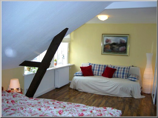 Blick in eines der beiden Schlafzimmer im Dachgeschoss