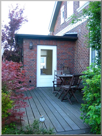 Blick in den zum Wohnbereich offener Anbau mit Terrassen-/Gartenausgang
